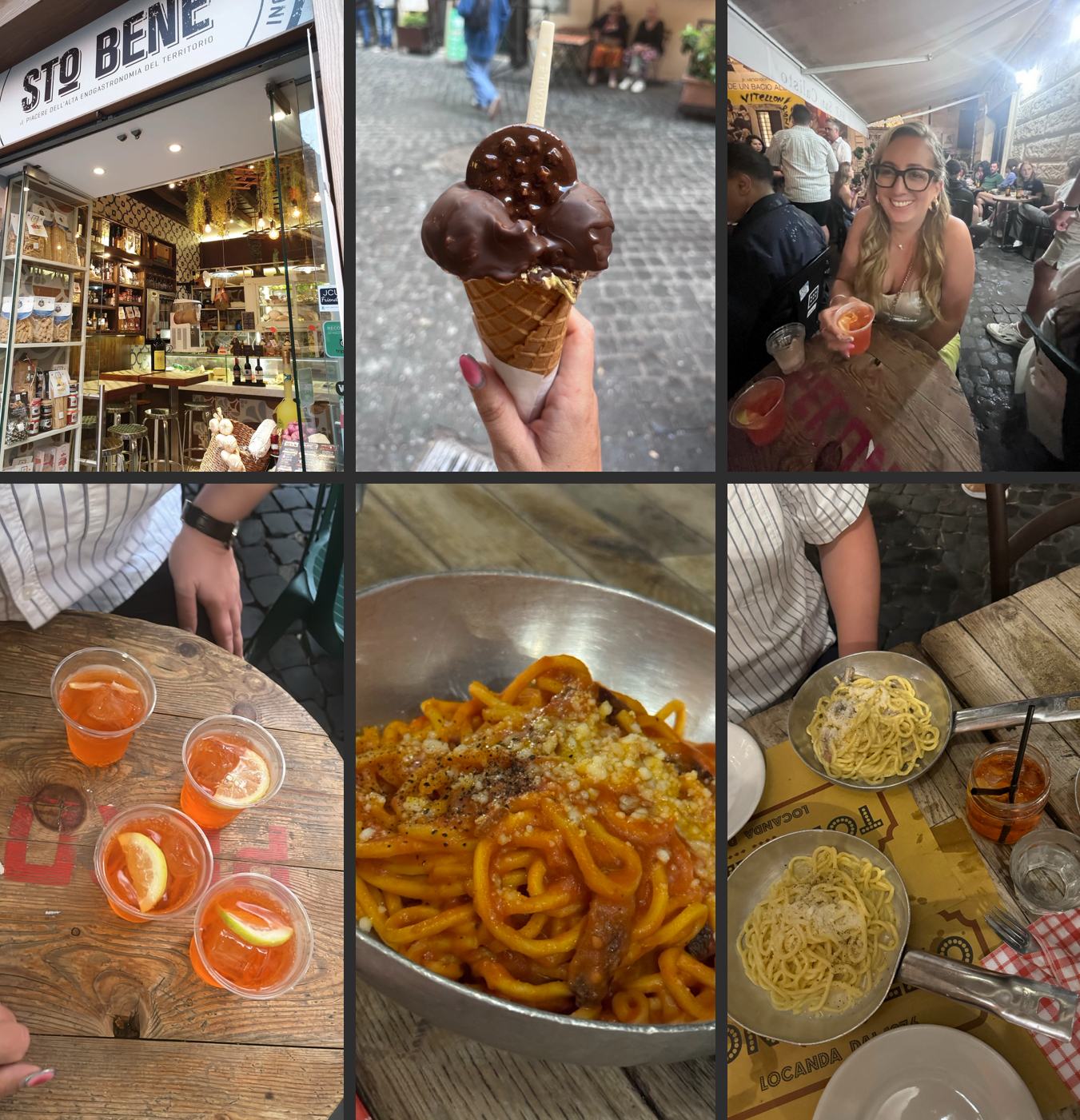 At this point, we were on the booze train but I needed carbs, and what better place for that than Rome! We wandered the beautiful rain soaked streets and ended up in La Canonica (Ben’s choice as he decided that 20k Google reviews must mean something!). We couldn’t decide between several pasta dishes so ended up getting ‘one for the table’. Served in silver mini steel pans we had the Roman trio of ‘Cacio e Pepe’, Carbonara and the ‘Ametricana’ all washed down with Aperol’s served in jam jars! I’m sure it wasn’t just the booze talking but it was genuinely some of the best pasta i’ve eaten.