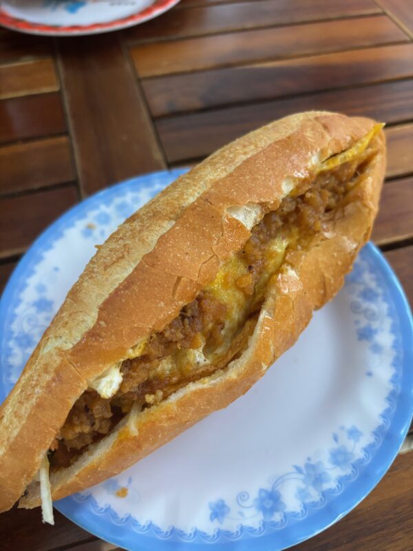 It would be remiss to recount a trip to Vietnam without mentioning the world-renowned Banh Mi. This famous delight is an absolute must. A crispy, yet airy baguette, overflowing with fillings. The classic is to have the mixed meats… barbecued Chinese pork, Vietnamese minced pork, grilled pork sausage, chicken, and of course, the pate. All accompanied by fresh, crunch veg and the bold coriander and chilli flavours. Again, be very careful what spice level you ask for! We were guided to ‘Madam Khanh’ in Hoi An by our local guide, and I can highly recommend it. The mixed Banh Mi accompanied by a fresh, sharp passionfruit juice, what a lunch!