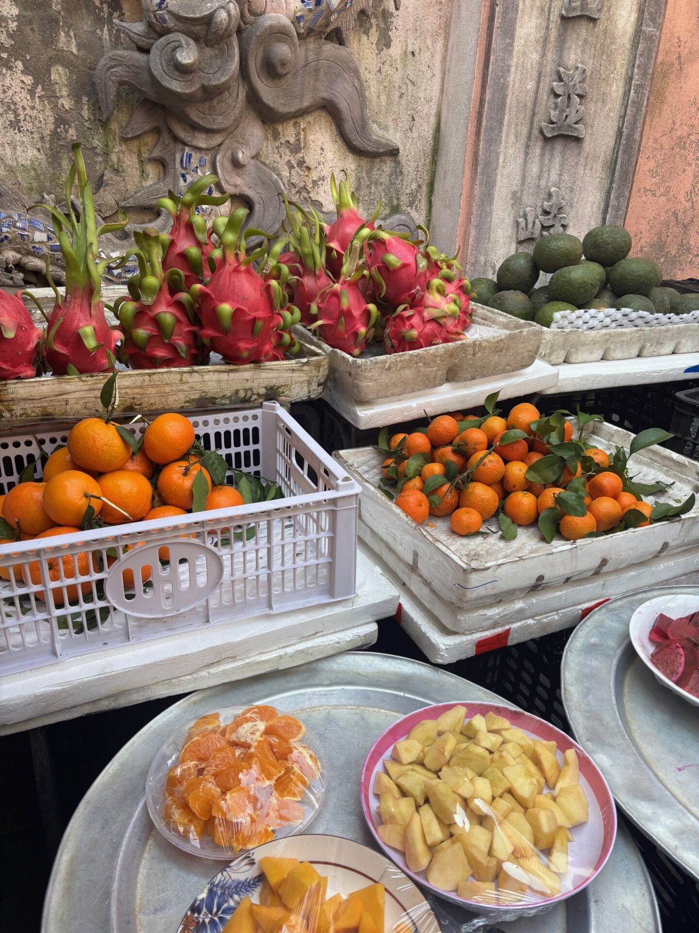 My advice… be careful how spicy you ask for your Pho, a few of my fellow travellers were burned by that! What mesmerised me the most throughout Vietnam was the endless supply of brightly coloured, delicious fruits. Every market stall was a visual delight. From hot pink, vine-like dragon fruit, to humungous, multicoloured pomelos, and, confusingly, green oranges! Fresh fruit was a persistent theme throughout my travels, as it was often a complimentary treat at the end of a meal to refresh the palette.