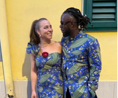 Reevel and I decided to put our own spin on it. Dressed in matching traditional African outfits (because why not?), we invited everyone to embrace the theme, especially since we couldn’t serve African food. Picture this: I’m relaxing in my room when I hear music drifting up from below. There’s Rev, standing beneath my balcony with a band behind him, singing his heart out. My dad was busy topping up guests’ glasses of homemade Primitivo wine, making sure the atmosphere stayed lively and warm. Then, in a moment worthy of a rom-com, Rev climbs a ladder to join me, rose clenched between his teeth.