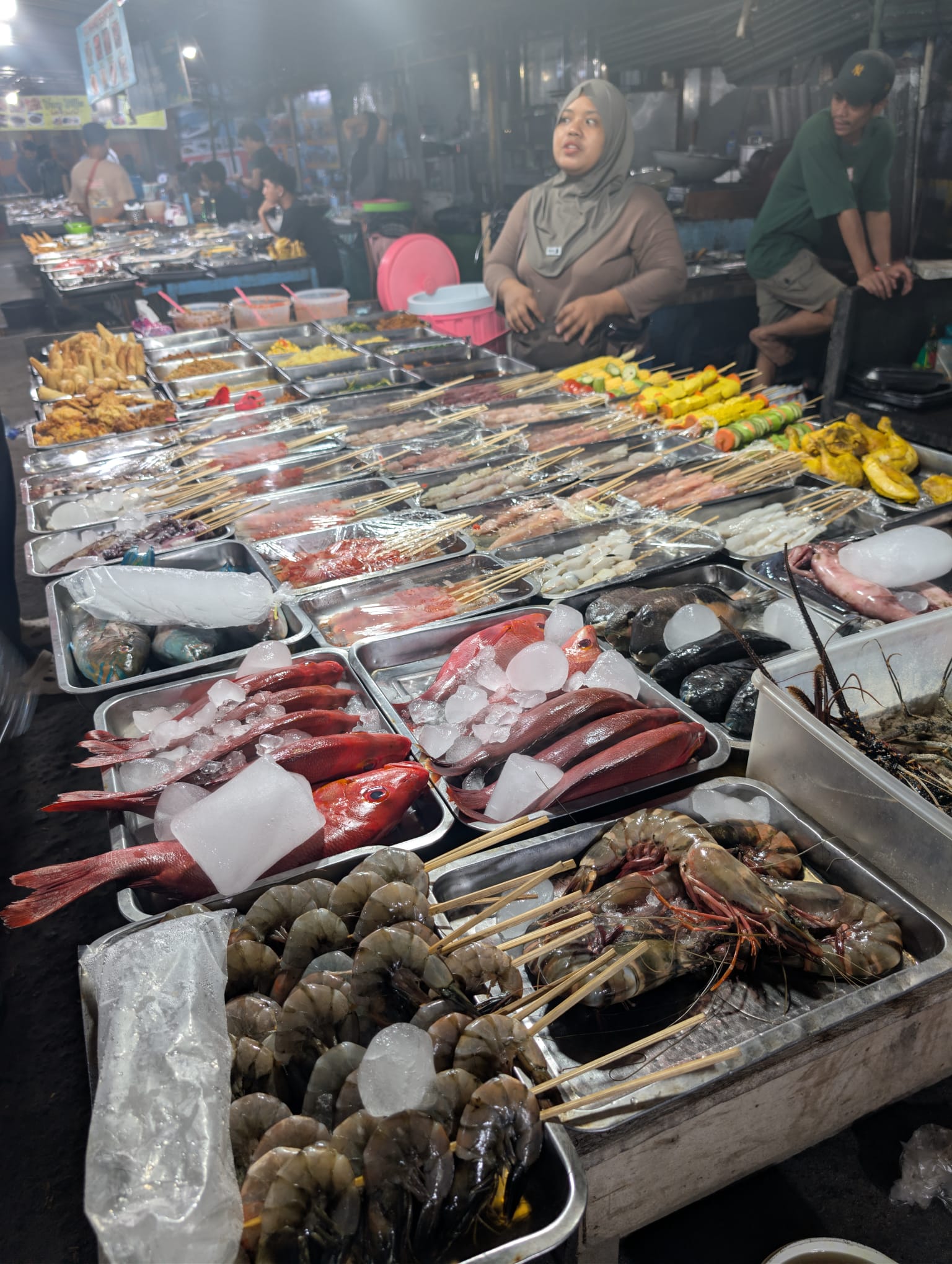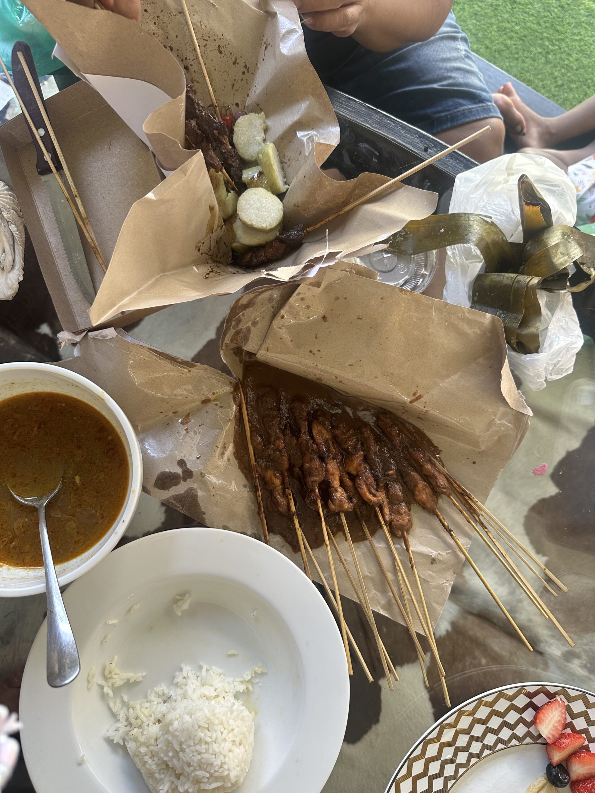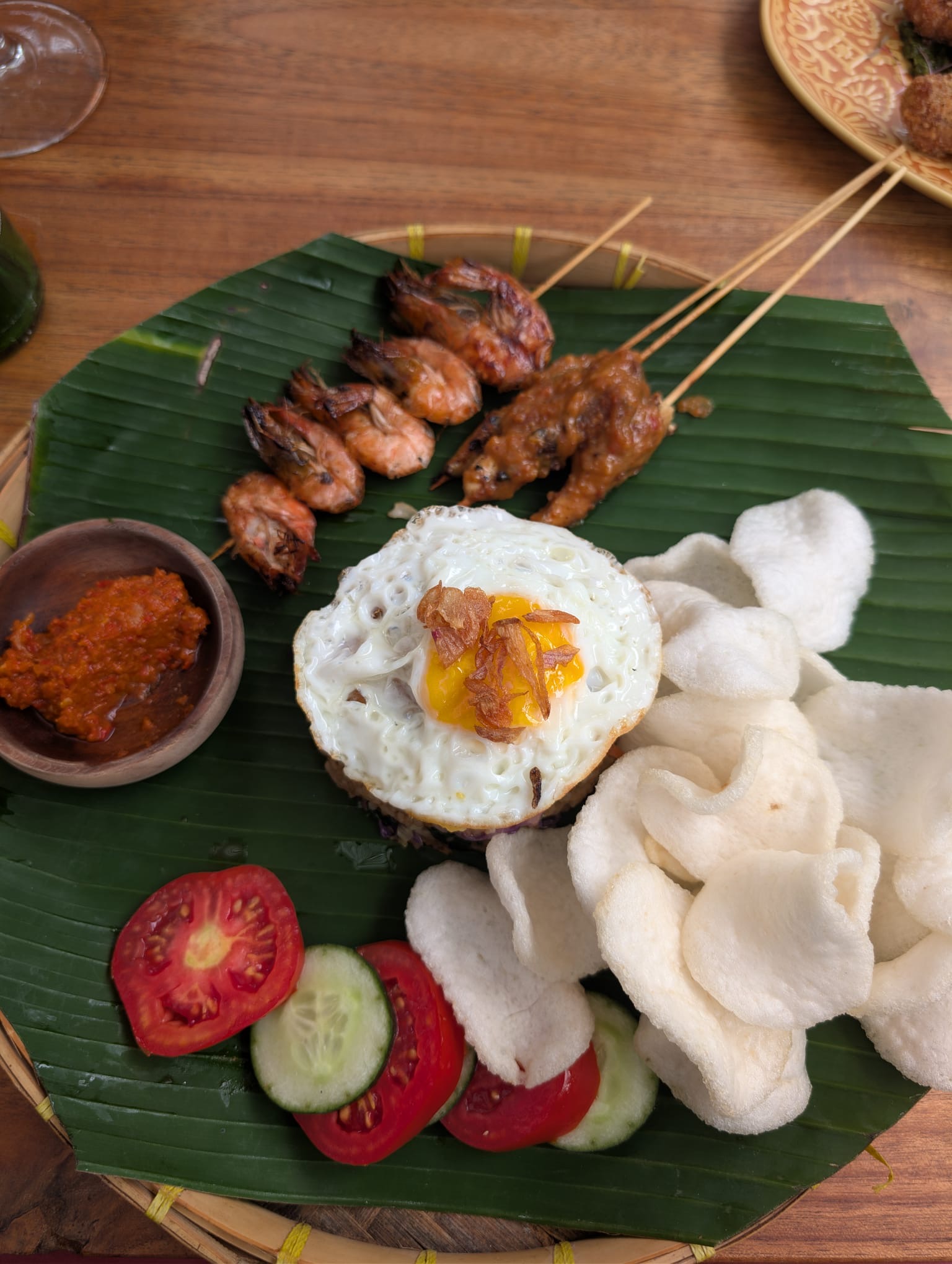 - Sate (skewered meat/fish) served with sambal, satay sauce and kerupuk (crackers)