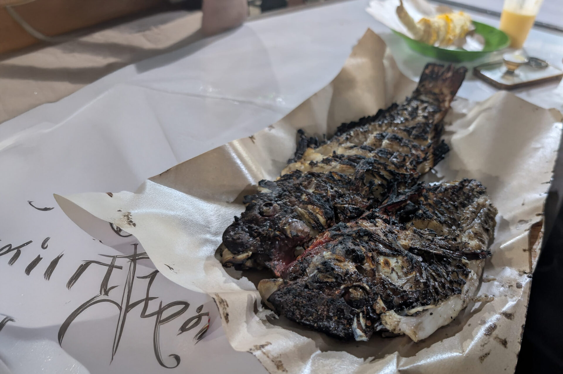 - Ikan bakar (grilled fish) server with tempe, tofu, veg and rice - best eaten with your hands!
