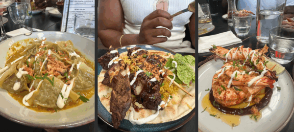 Her Jurkish chicken kebab sums up the cuisine perfectly: Shish kebab served on sticks, coupled with her homemade jerk chicken seasoning and sauce, served on flatbread and rice, just as it would at your local kebab shop. I loved the helim – the scotch bonnet heat on the hot honey takes you by (a pleasant) surprise. The guava glaze on the chicken works beautifully with the spring onion and garlic dip and her curry goat manti is so moreish and addictive.