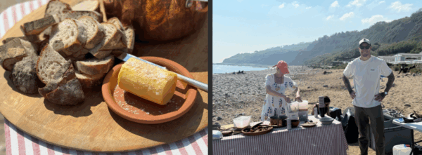 We returned to the beach empty handed, but only briefly, as Charlie and Angus from Sea Sisters greeted us with canapés made with seafood from their own conservas.