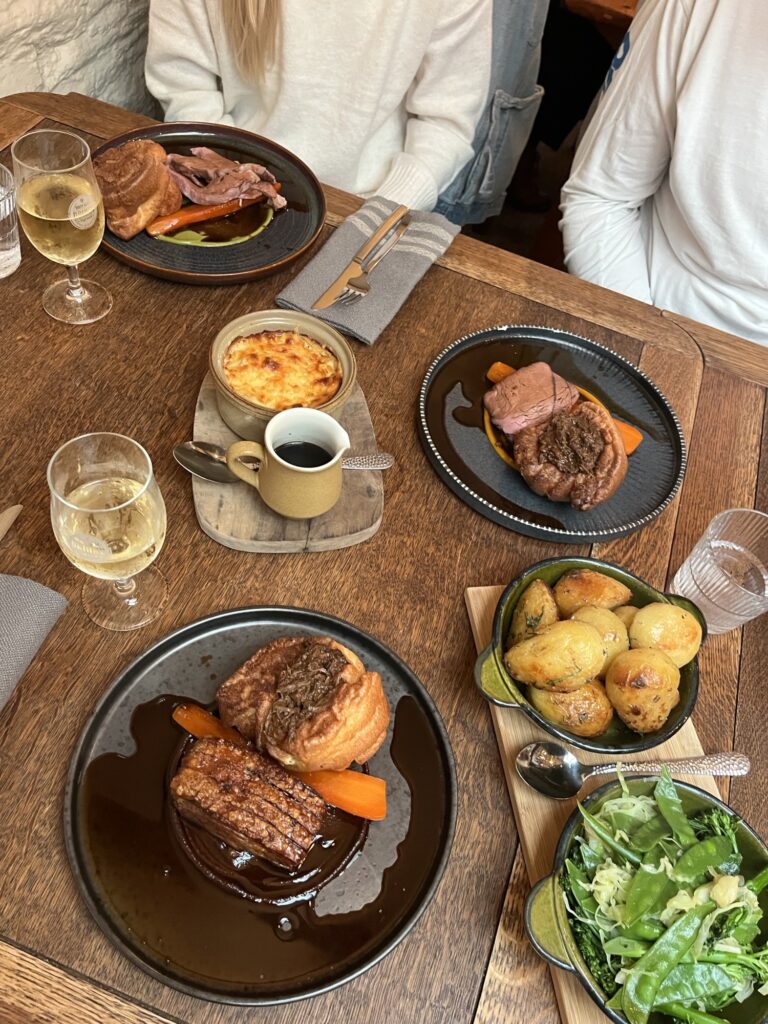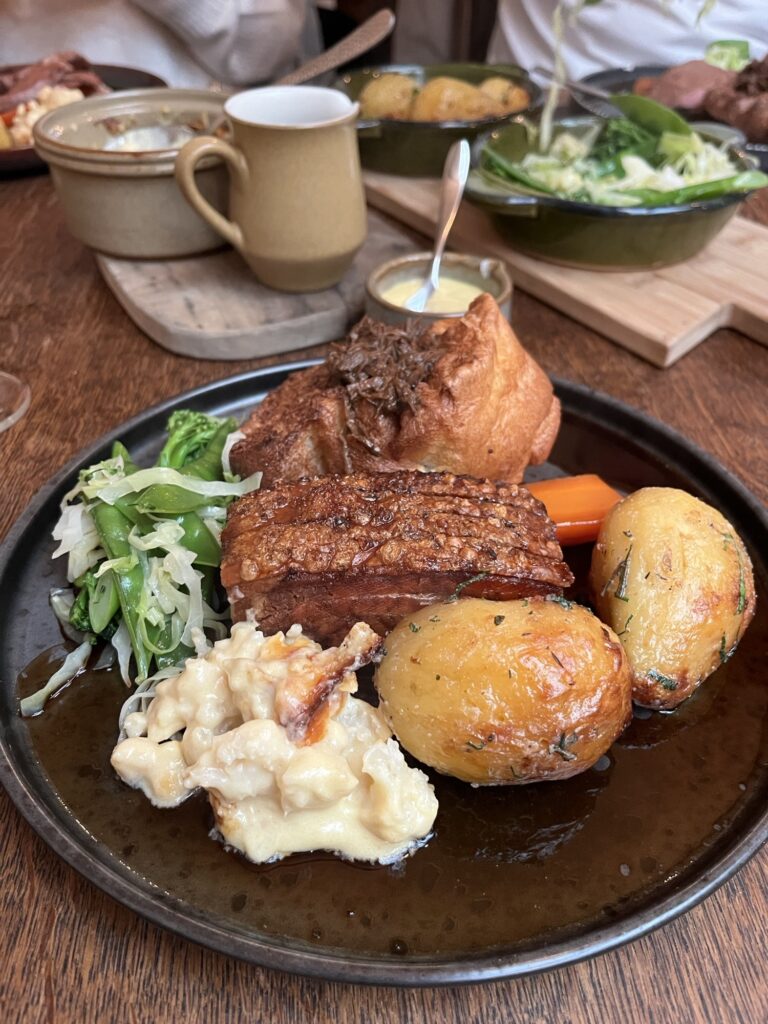 This charming village pub recently reopened under new management – a young couple, the head chef and front of house manager. We went for a traditional Sunday roast and sampled all three meat options: leg of lamb, beef rump, and pork belly. Each was served with cauliflower cheese, seasonal veg, and a giant Yorkshire pudding. For £1.50, you can upgrade your Yorkie to be filled with beef brisket. Naturally, I did and absolutely did not regret that decision, other than not being able to finish it all.