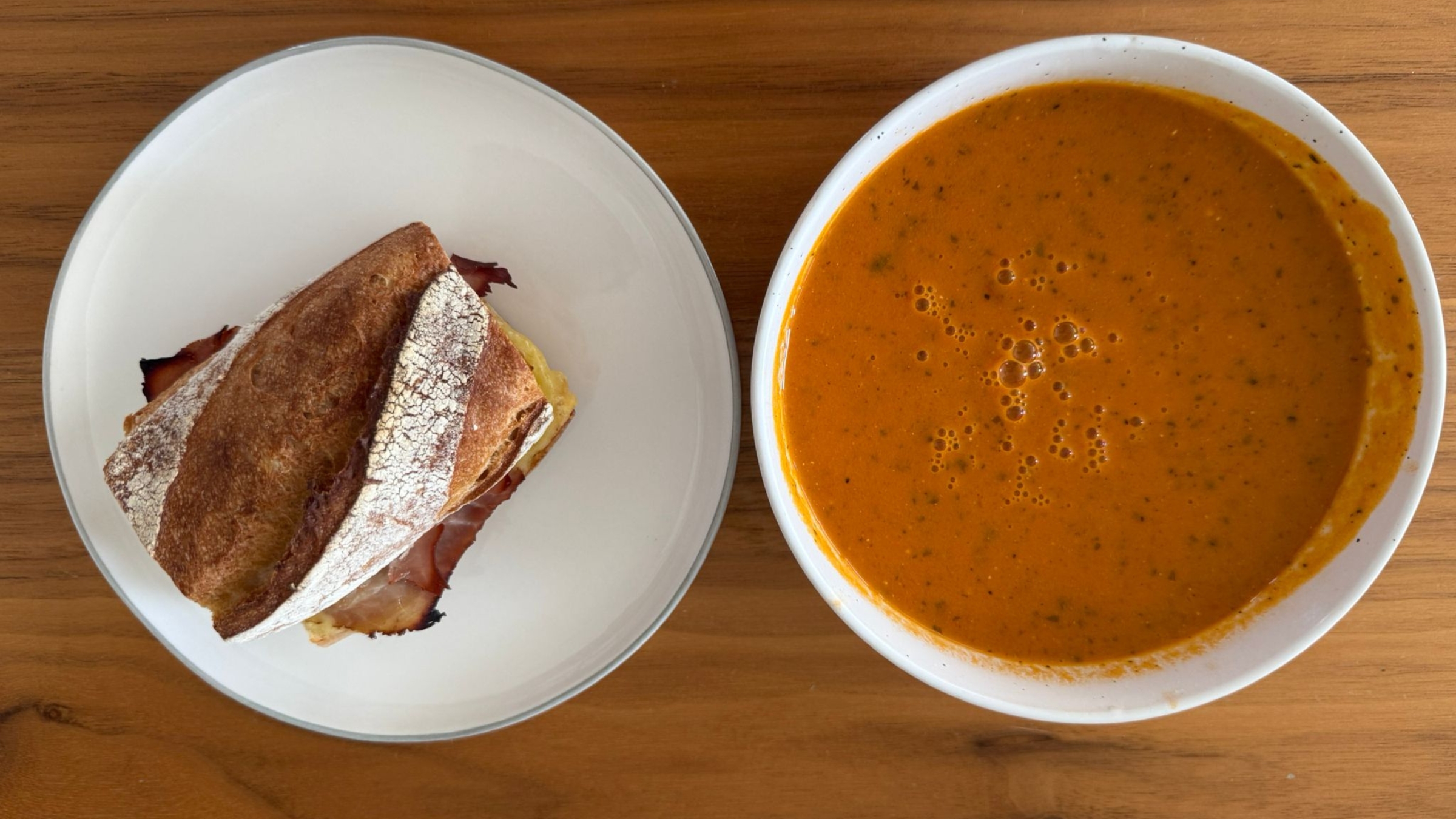 Sometimes the simplest things – a bowl of tomato soup and a cheese toastie – are exactly what you need to feel better, whether you’re fighting off a virus after a long run of events or just a grey day.