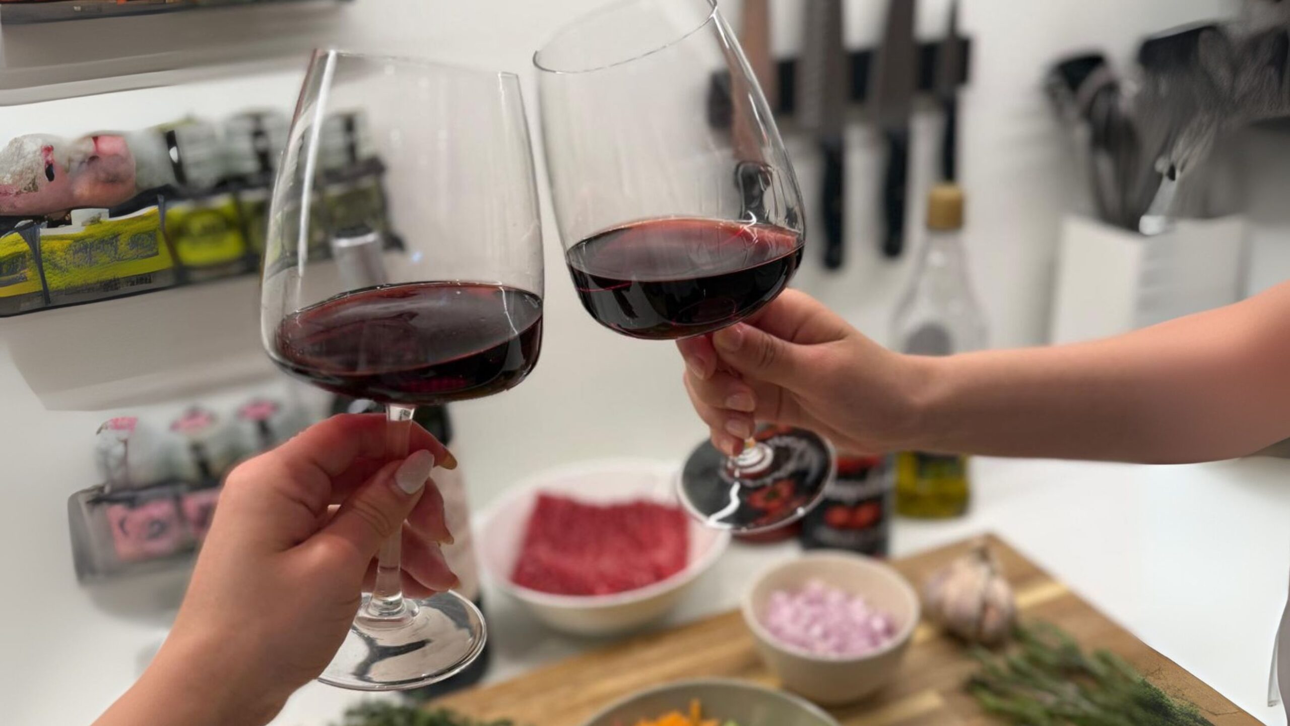 We started with the ragù. Garlic, shallots, celery, carrots, beef, tomatoes, fresh rosemary and thyme. And obviously a bit of Chianti. Some went into the sauce, most into our glasses. Had to give it a taste first… with a little toast to kick things off. We let it simmer for ages and the whole flat smelled amazing.