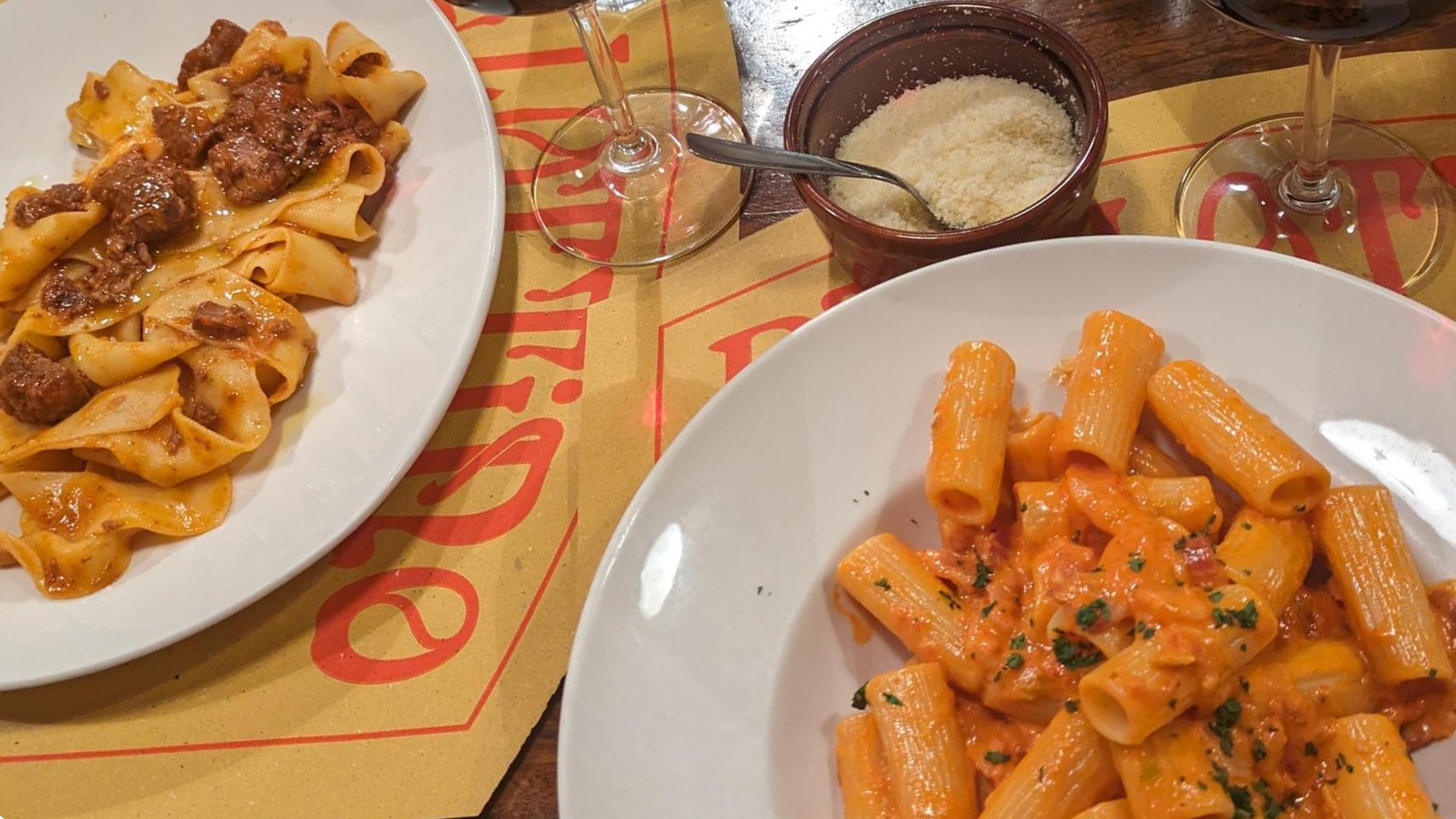 After finishing our pasta, we were eager to order a secondi, but the language barrier caused some confusion. Eventually, we decided to skip the secondi and settle for a tiramisu to share instead. That’s when the owner came over. Despite a hilariously broken conversation, we managed to compare wedding rings, share a few laughs, and before we knew it, he disappeared only to return with three shots of homemade limoncello. We toasted and took a sip, only for him to quickly return with a stronger bottle when he deemed the first batch too weak. We toasted again, laughed some more, and enjoyed the moment together.